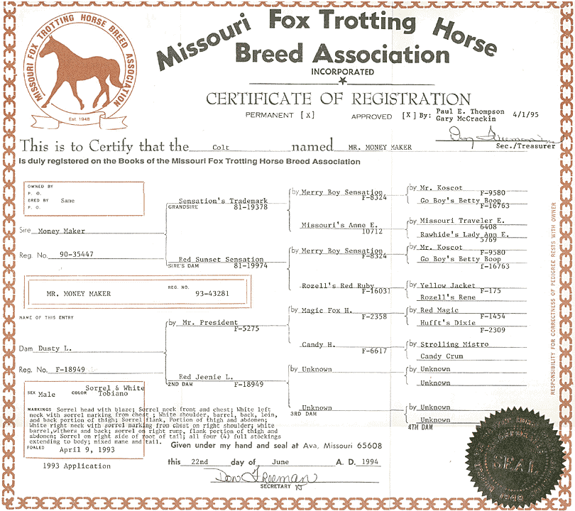 Money stands 15.2 hands and is used as our personal trail horse. His offspring inherit his wonderful mind, size and natural ability and are easy to train and work with.